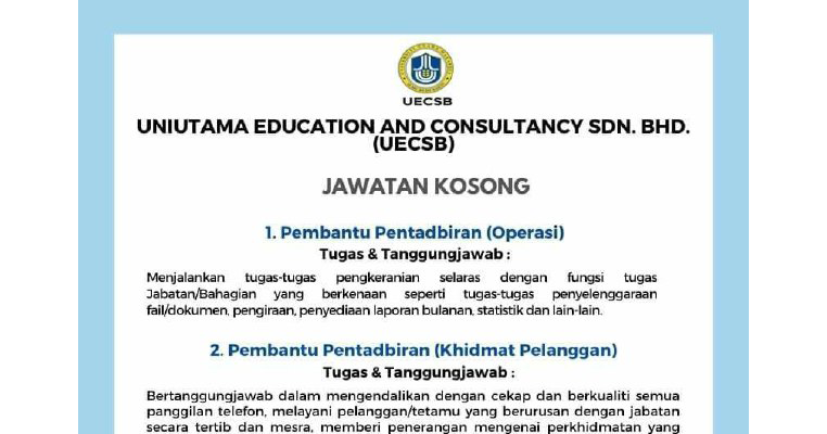 Jawatan Kosong Di Uniutama Education And Consultancy Sdn Bhd Jobcari Com Jawatan Kosong Terkini