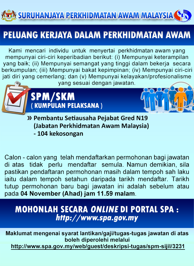 Jawatan Kosong Suruhanjaya Perkhidmatan Awam Spa 77 Kekosongan Tetap Berpencen Jobcari Com Jawatan Kosong Terkini