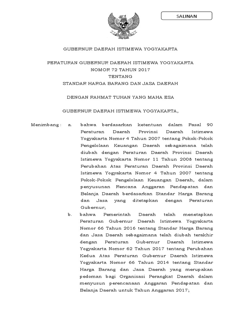 Pergub 72 2017 Shbj Diy Tahun 2017