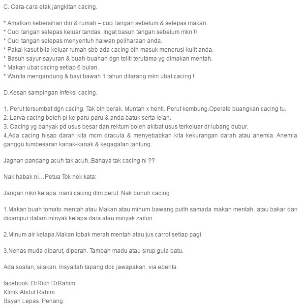 Penggunaan Ubat Cacing Satu Keperluan Kementerian Kesihatan Malaysia Facebook
