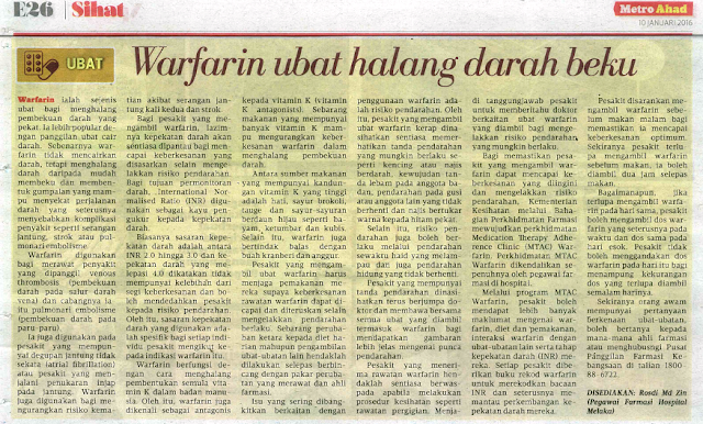 Ini boleh meningkatkan risiko pendarahan. Orang yang mengambil ubat mencairkan darah tidak harus menggunakan ubat semula jadi tanpa berbincang dengan doktor mereka terlebih dahulu. Tekanan darah rendah cukup sama mengganggunya dengan tekanan darah tinggi karena selalu ada dampak negatifnya juga untuk para penderitanya. K nker p ru paru berkemb ng secara perlahan sehingg tid k menimbulk n gej la ketika k nker m sih st dium wal.