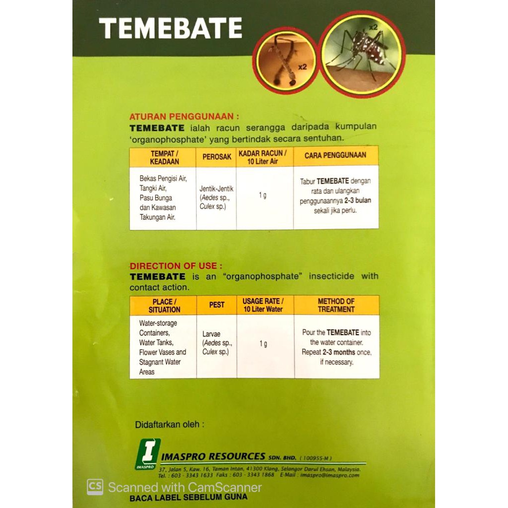 Temebate Mosquito Larvicide 10 Packs X 10g Ubat Jentik Jentik Nyamuk Denggi Dengue Shopee Malaysia