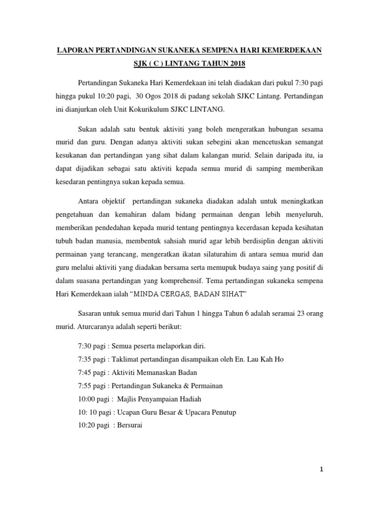 Contoh Karangan Laporan Sambutan Kemerdekaan Peringkat Sekolah