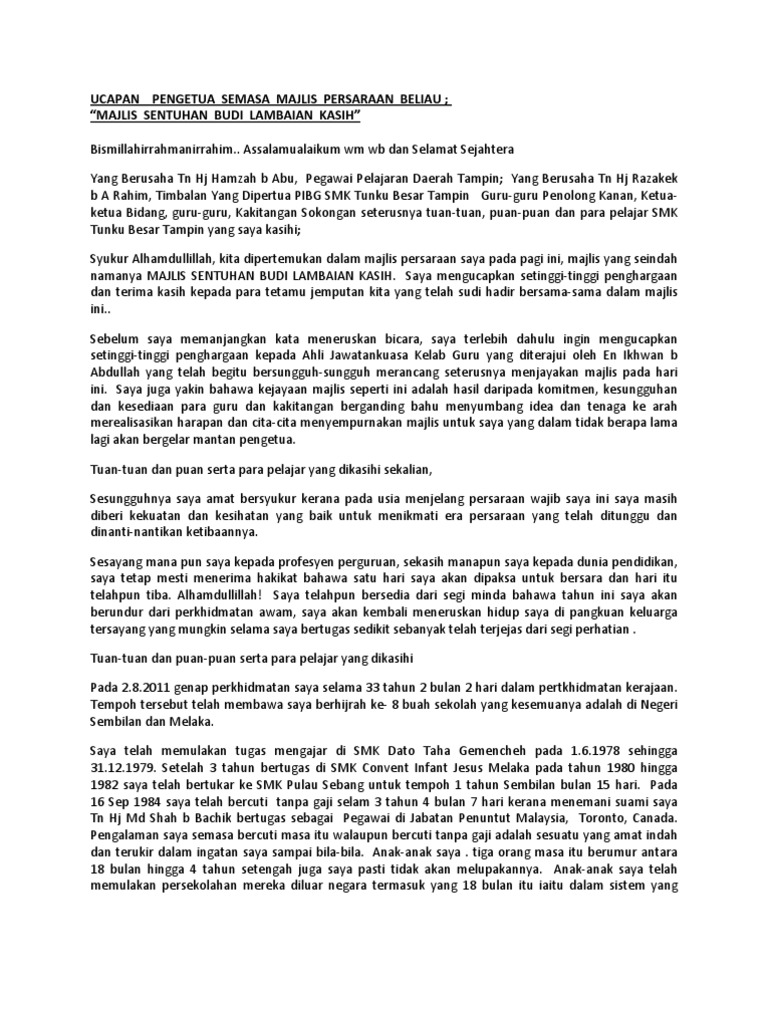Doc Contoh Ucapan Wakil Murid Untuk Majlis Persaraan Sharina Sharina Academia Edu