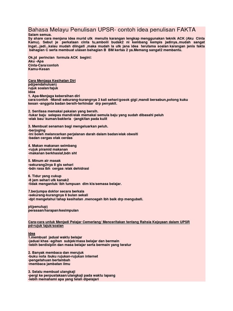 Isi Isi Penting Bm Penulisan Karangan Upsr Education Words Study
