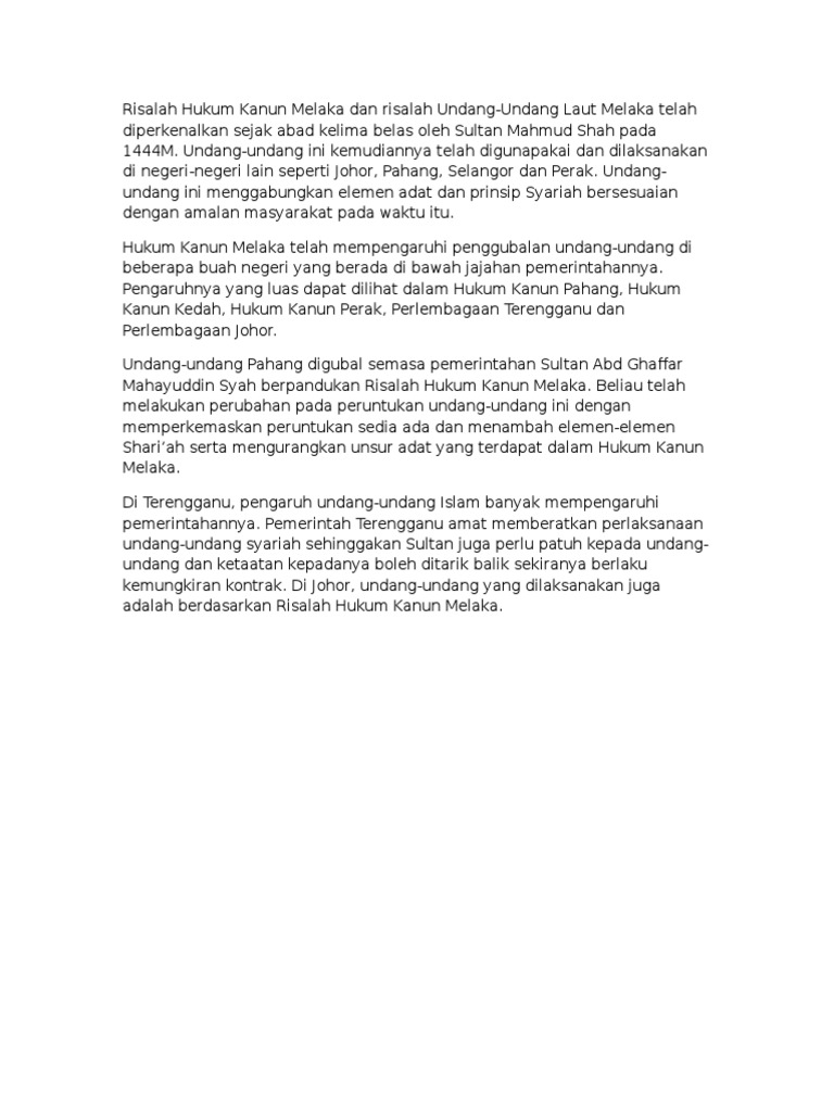 Undang Undang Laut Melaka Dan Hukum Kanun Melaka