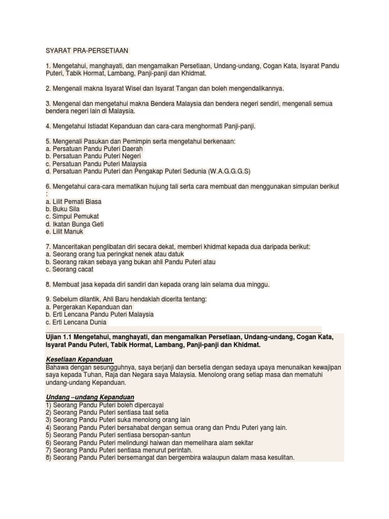 Persetiaan Cogan Kata Dan Undang Undang Pandu Puteri