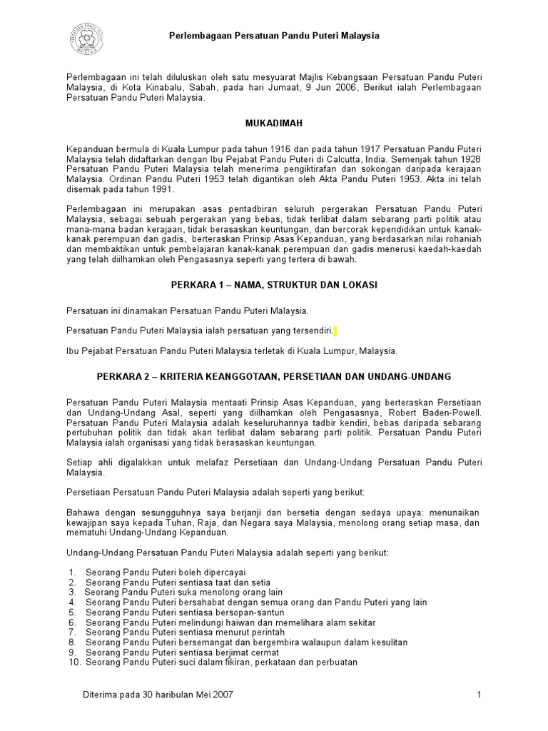 1 Perlembagaan Persatuan Pandu Puteri Malaysia