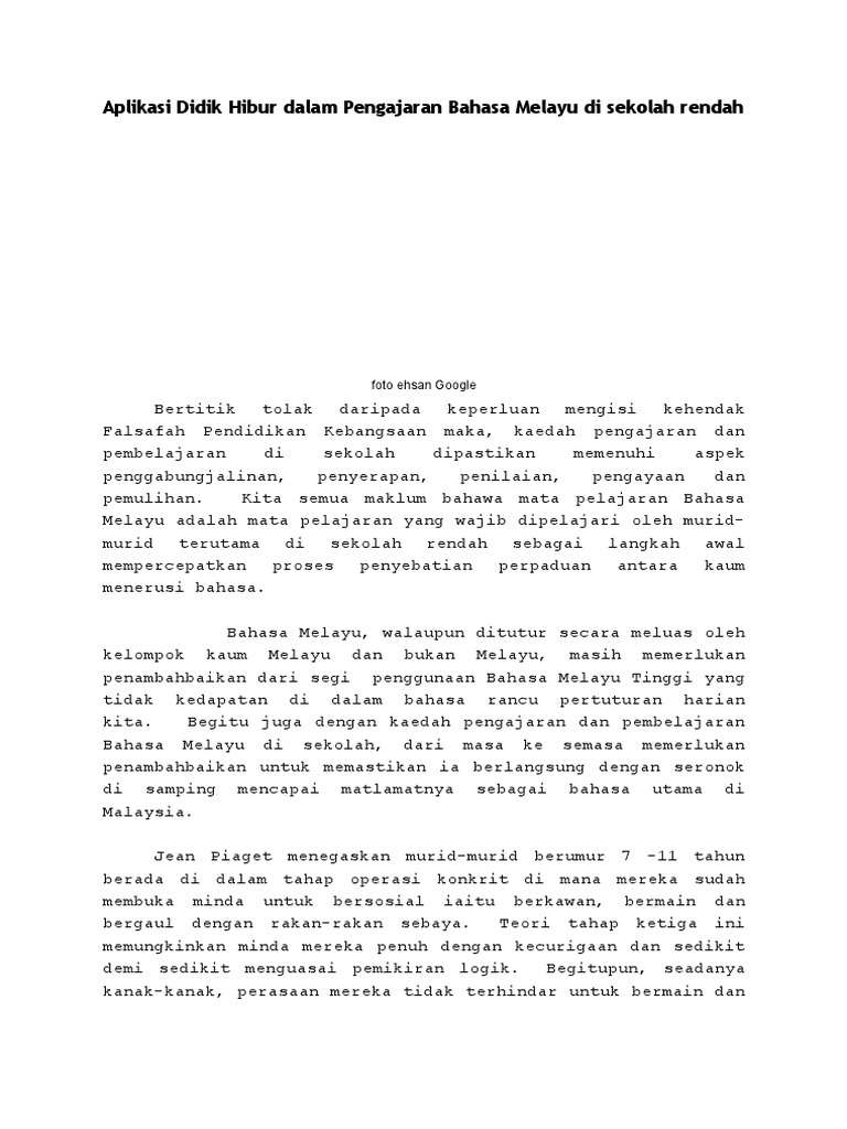Aplikasi Didik Hibur Dalam Pengajaran Bahasa Melayu Di Sekolah Rendah