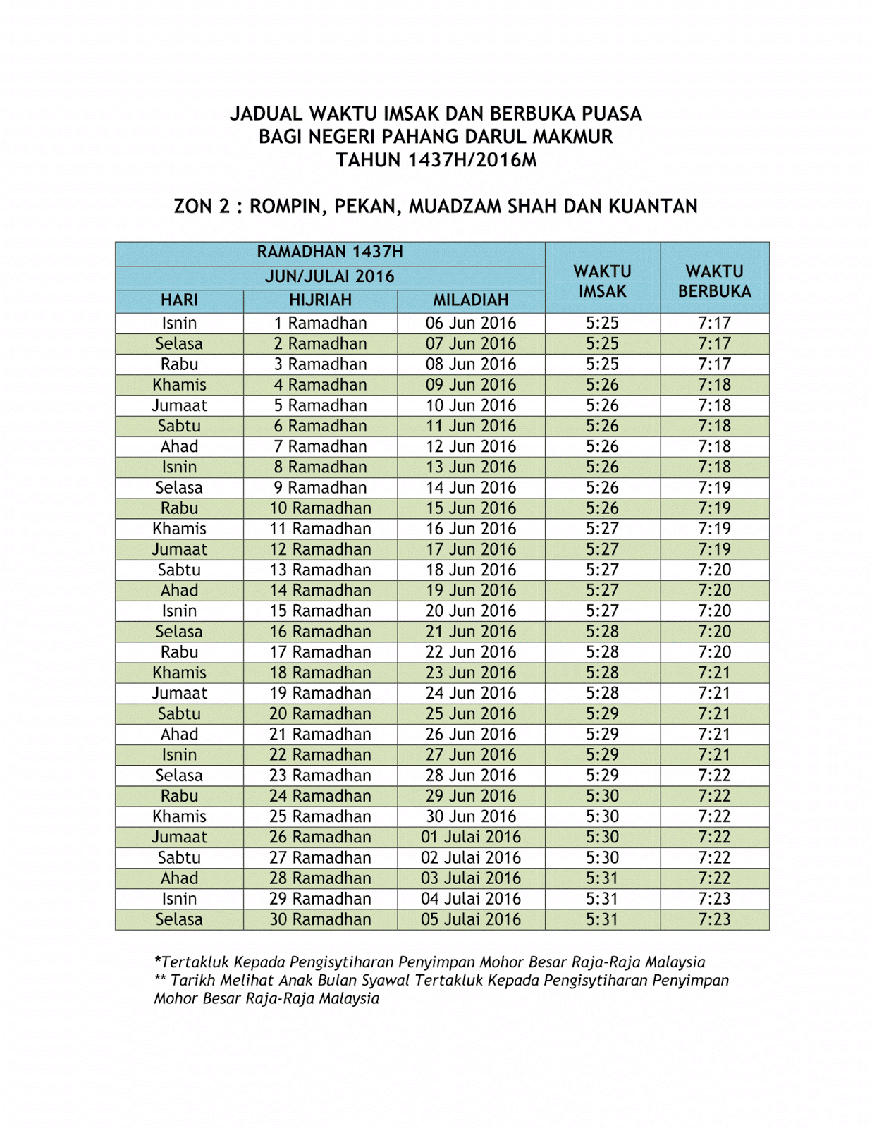 Waktu Berbuka Puasa Dan Imsak Pahang 2016 Akif Imtiyaz