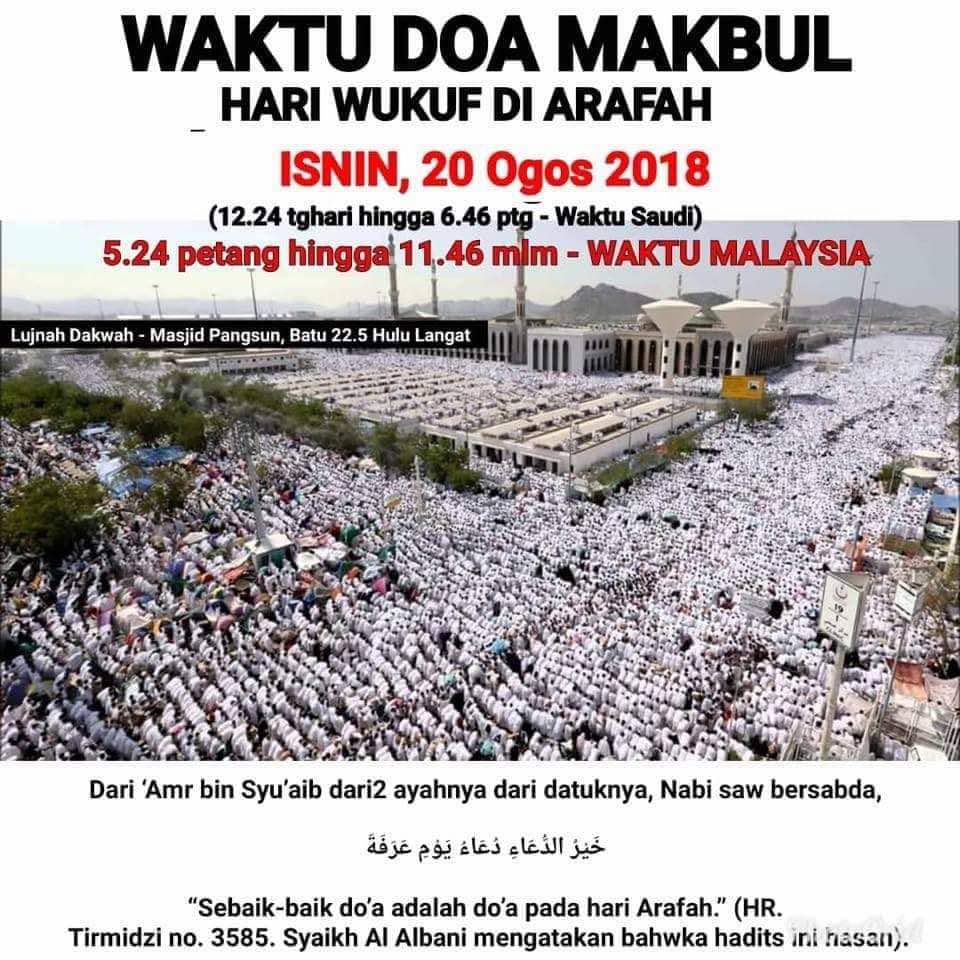 Ahmad Sanusi Husain Com Waktu Yang Mustajab Untuk Berdoa Pada Hari Arafah Tahun Ini Waktu Makkah Zohor 12 27 Pm Maghrib 7 01 Pm Waktu Malaysia 5 27 Pm 12 01 Am