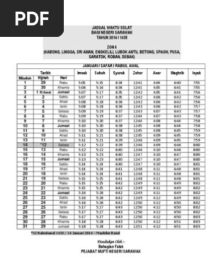 Jadual Solat Zon 8 Kuching Bau Lundu Sematan