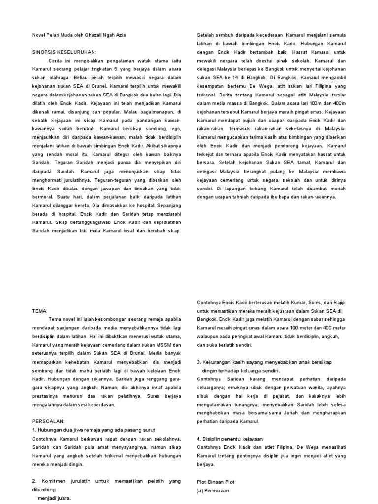 Tingkatan 1 Novel Pelari Muda Pdf Novel Pelari Muda Ini Merangkumi Nota Bagi Sinopsis Tema Dan Persoalan Watak Dan Perwatakan Teknik Plot Plot Gaya Course Hero