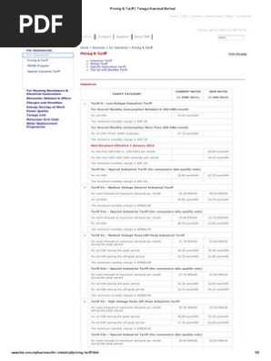 Industrial Pricing Tariff Tenaga Nasional Berhad Kilowatt Hour Electrical Engineering