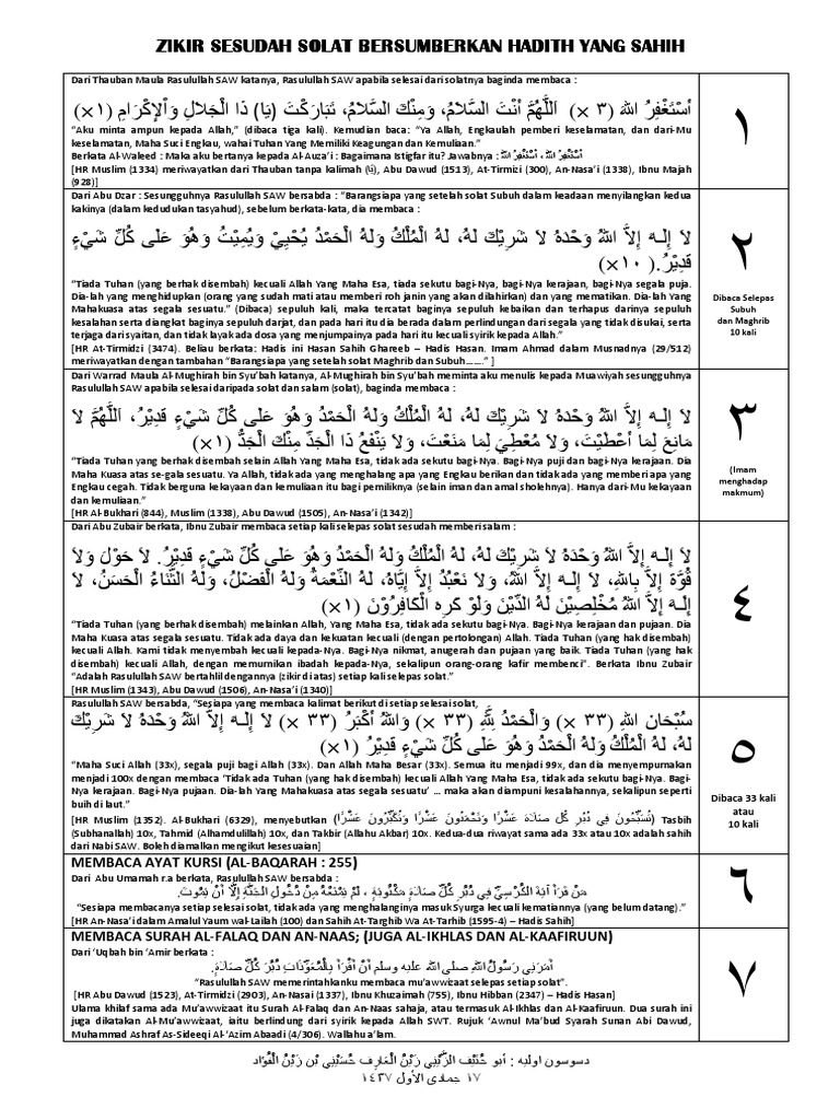 Adleazme Zikir Selepas Solat Fardhu Sahih Sunnah Nabi Kutipan Pelajaran Hidup Sembahyang Pelajaran Hidup